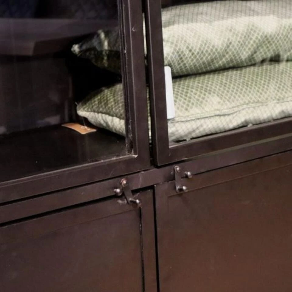 Bij deze Garcia vitrinekast gaat het om stoere en robuuste uitstraling. Dit komt duidelijk terug in de grove handvaten en de opgezette scharnieren. Het is een robuuste kast die zowel in je woonkamer als in je thuiskantoor of in de keuken kan geplaatst worden. Deze kast is volledig in zwart, maar er is ook een variant met naturel houten legplanken.