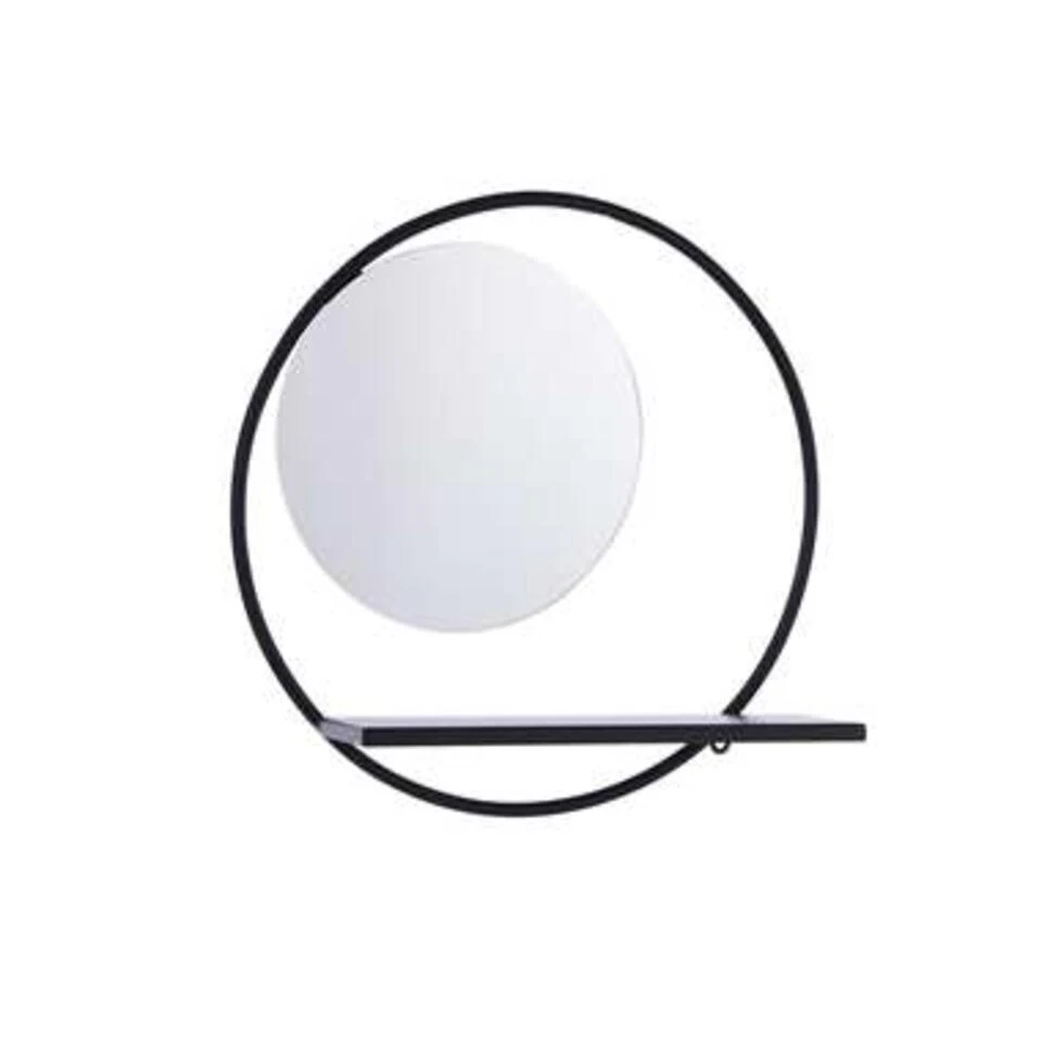 Het moderne design van de Phoenix spiegel uit de collectie van Mica Decorations is een aanwinst voor iedere lege muur. Het is bijna een kunstwerk! Daarnaast is hij door het handige plankje om wat spullen op te leggen ook nog eens erg praktisch. Ideaal voor in de hal of de slaapkamer. Het frame is gemaakt van zwart metaal en weet overal wel een plekje te vinden. Waar hang jij hem op? De ronde wandspiegel heeft een diameter van 39 cm en is 11 cm diep.